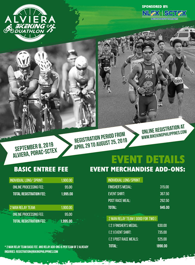 - You may registration online from April 29, 2019 to August 25, 2019 by clicking on http://bikekingphilippines.com/. Registration fees may be paid online via credit or debit cards or via bank deposit
